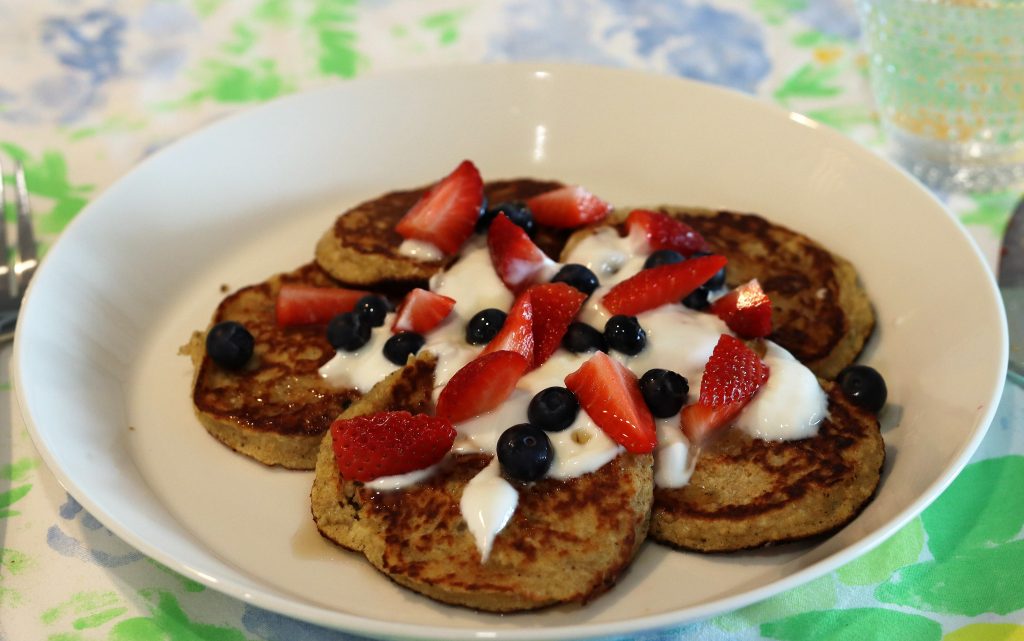 Banaanipannukakut ovat parasta sunnuntaiaamuisin, kun on vähän enemmän aikaa tehdä aamupalaa. Ihanan raikas aamu, pieni auringonpaiste, teetä, mehua ja banaanipannukakkuja eikä kiire mihinkään. Täydellistä. Banaanipannukakut ovat helppo tehdä ja ne sopivat myös, esimerkiksi brunssille jälkiruoaksi. Niiden kanssa voi syödä mitä vain herkullista, kuten jäätelöä tai suklaakastiketta. Kuitenkin klassikko yhdistelmäni banaanipannukakkujen kanssa on maustamatonta jugurttia, vaahterasiirappia ja marjoja. Mustikat ovat ehdottomasti lempparimarjani yhdistää tähän.